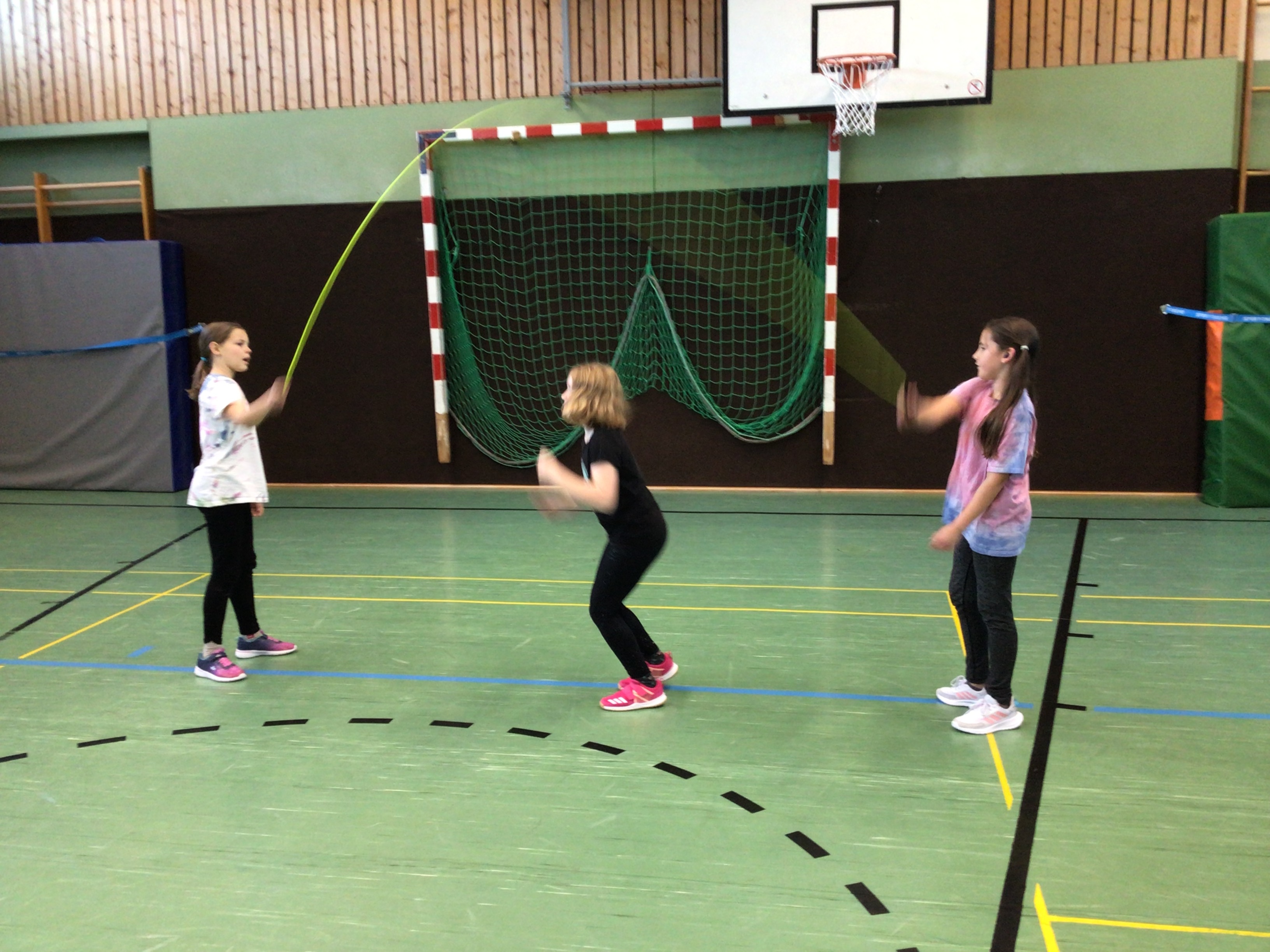 Während des 90minütigen Projekts mit einem zertifizierten Workshopleiter konnten die Schülerinnen und Schüler zahlreiche Sprungvariationen kennen lernen und sich darin üben. Alle waren mit großem Eifer dabei und insbesondere die immer wieder in den Ablauf eingebauten Spiele führten zu großer Begeisterung bei den Schülerinnen und Schülern. Insgesamt war es ein sehr gelungenes Projekt, das den Kindern in dieser besonderen Zeit sehr viel Spaß bereitet hat.